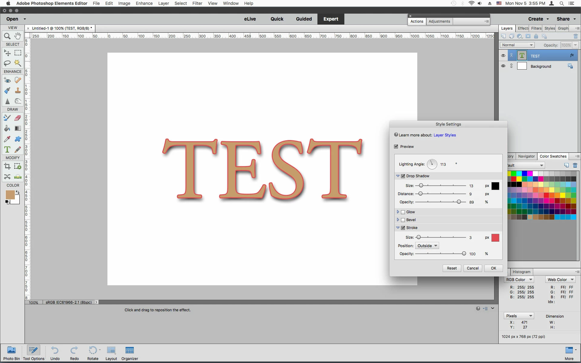 How do you add a simple drop shadow or stoke to text in PSE