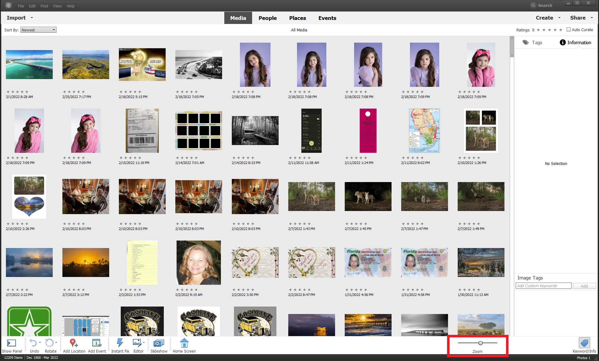 how do you make icons larger when viewing photos