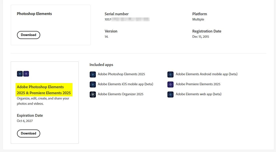 How does a user redownload Photoshop Elements 2025?