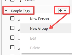 - If all of your friend's photos have People tags, you can create a Group called Friend's Photos. You do this by clicking on the down arrow next to the People tags in the Tags panel on the right of the Organizer window. Once you create the Group, you click and drag the named People tags to the Group name. If you click on the Group name the box will be checked and all of the Friends photos will be viewable in the grid.