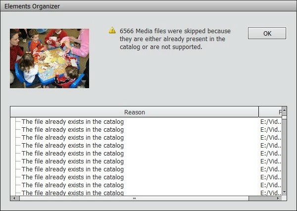 In other words, you created a new folder in Windows, named "friend". You then attempted to import the copied photos into the Organizer catalog. As discussed, this didn't work because the files have already been entered into the database.