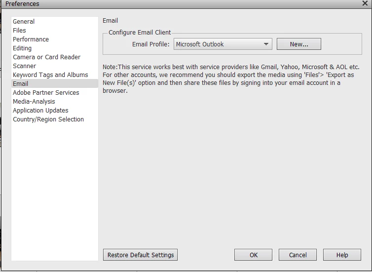 I have photoshop elements 2023 i cant share a photo using outlook help
