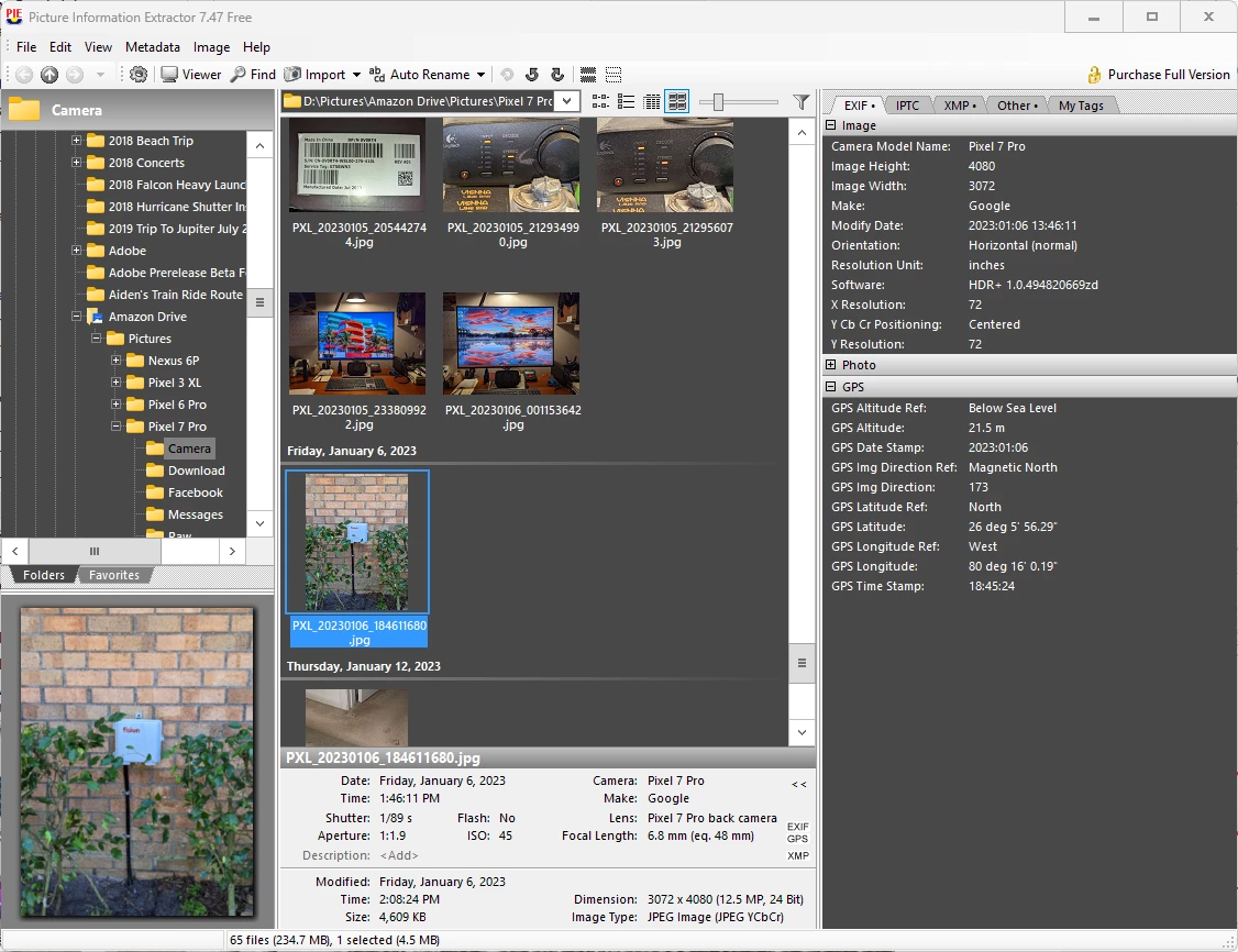 Or, You could open the photo in a free app called Picture Information Extractor. It displays all of the Exif data.