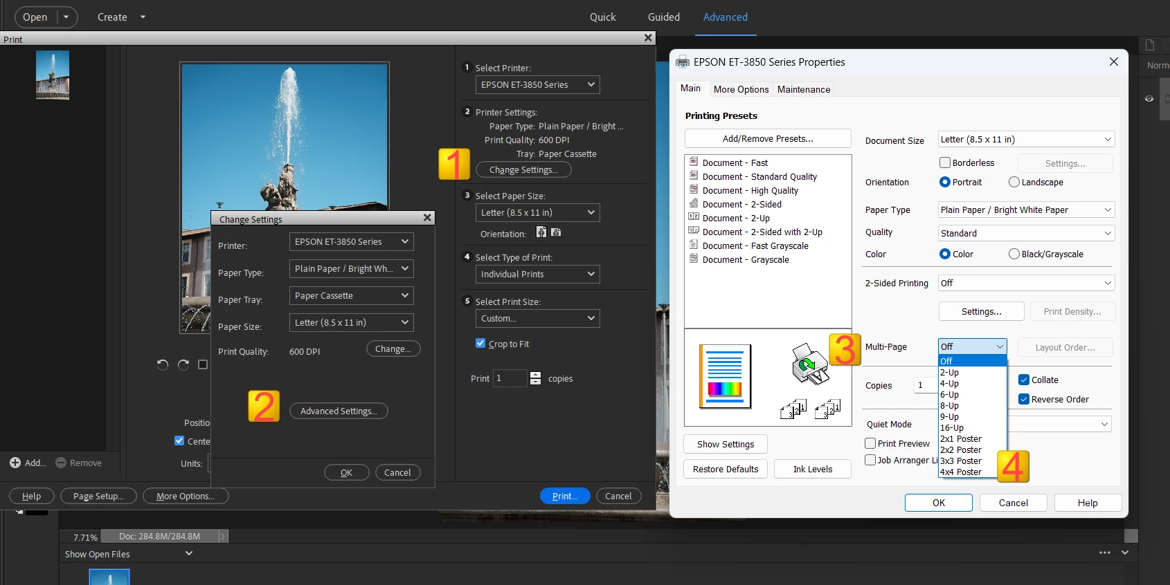 I want to print a multi-page poster of a picture I have in Photoshop Elements but find it imposible so far.