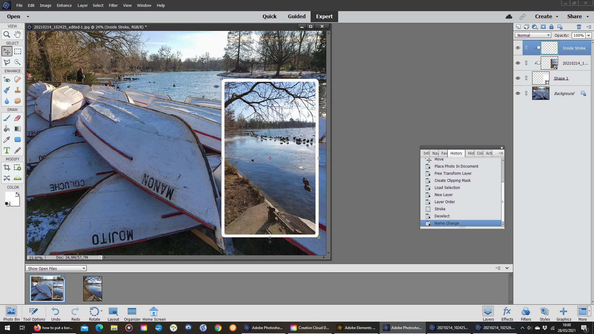how to put a border on a photo when edges of it are obscured - in Elements 20