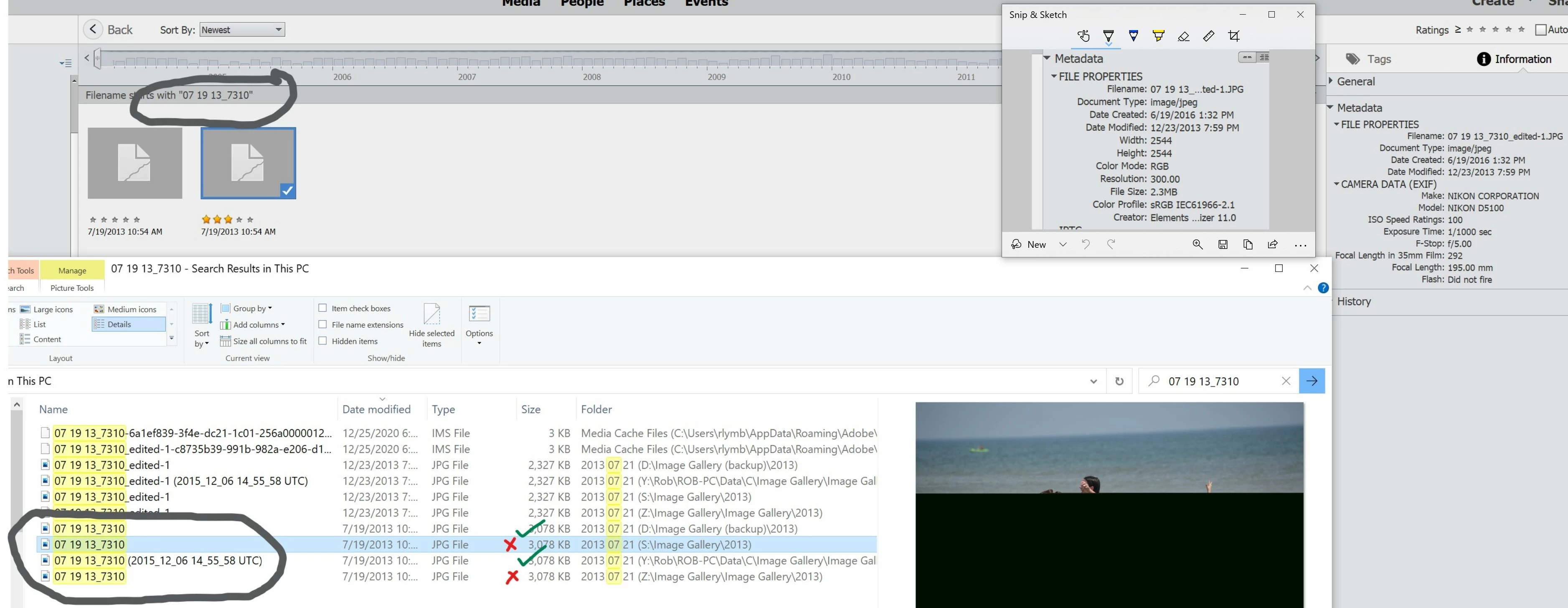 Fortunately I have backups which look valid (I can preview & open using Windows Explorer). Would I simply replace the corrupt file with the good one by copying the good file on top of the corrupt one? One of the files from the 4 circled has long file name that ends with "UTC)", what is that?