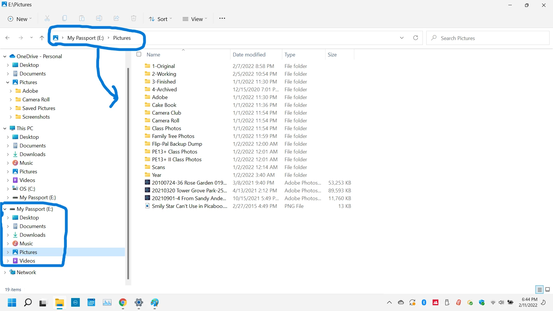 My old PC has an internal hard drive running Windows 8.1 and Photoshop Elements 2019 (PE2019). I have 753 GB of photos and scans in my Pictures folder, some of which are in my Elements catalog, and some of which are not. My catalog, named My Catalog 1 and stored in the default location, holds photos taken after I started using Elements and certain older photos that I needed to process in Elements.
