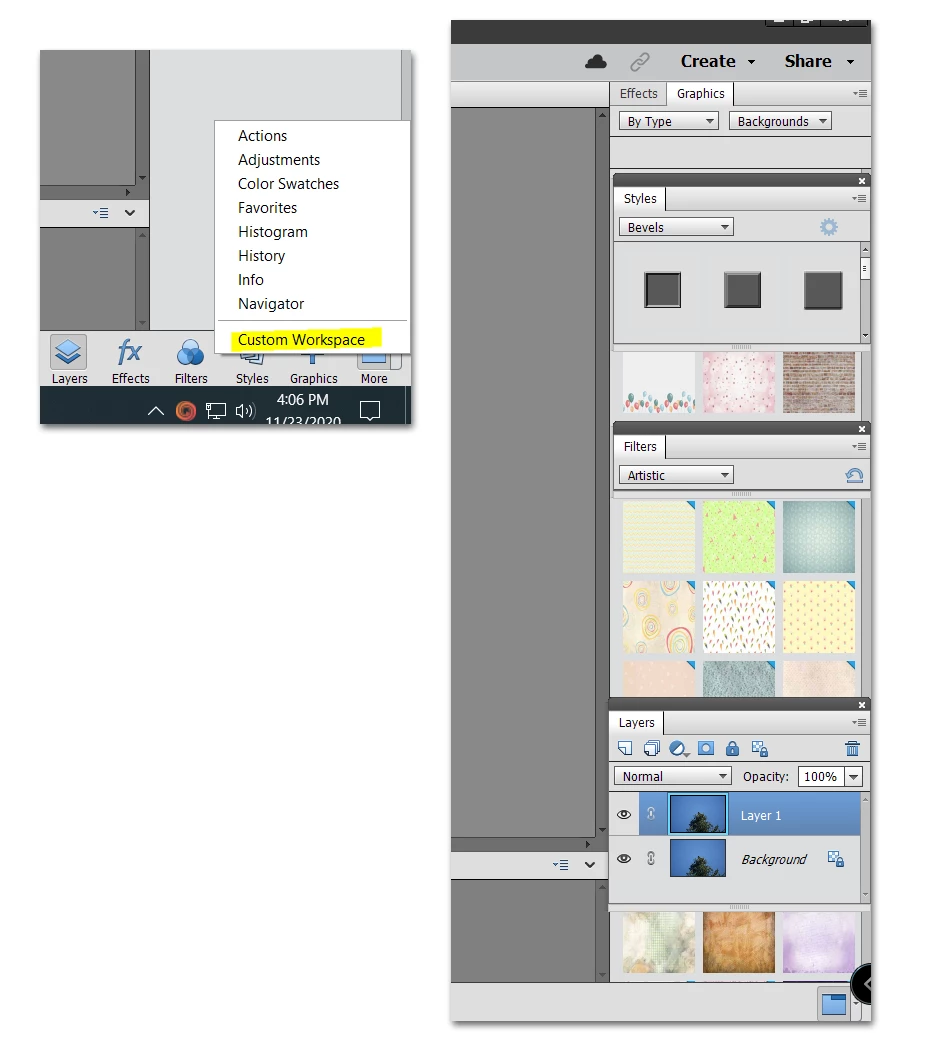 How to show layers and filters/styles etc at same time?