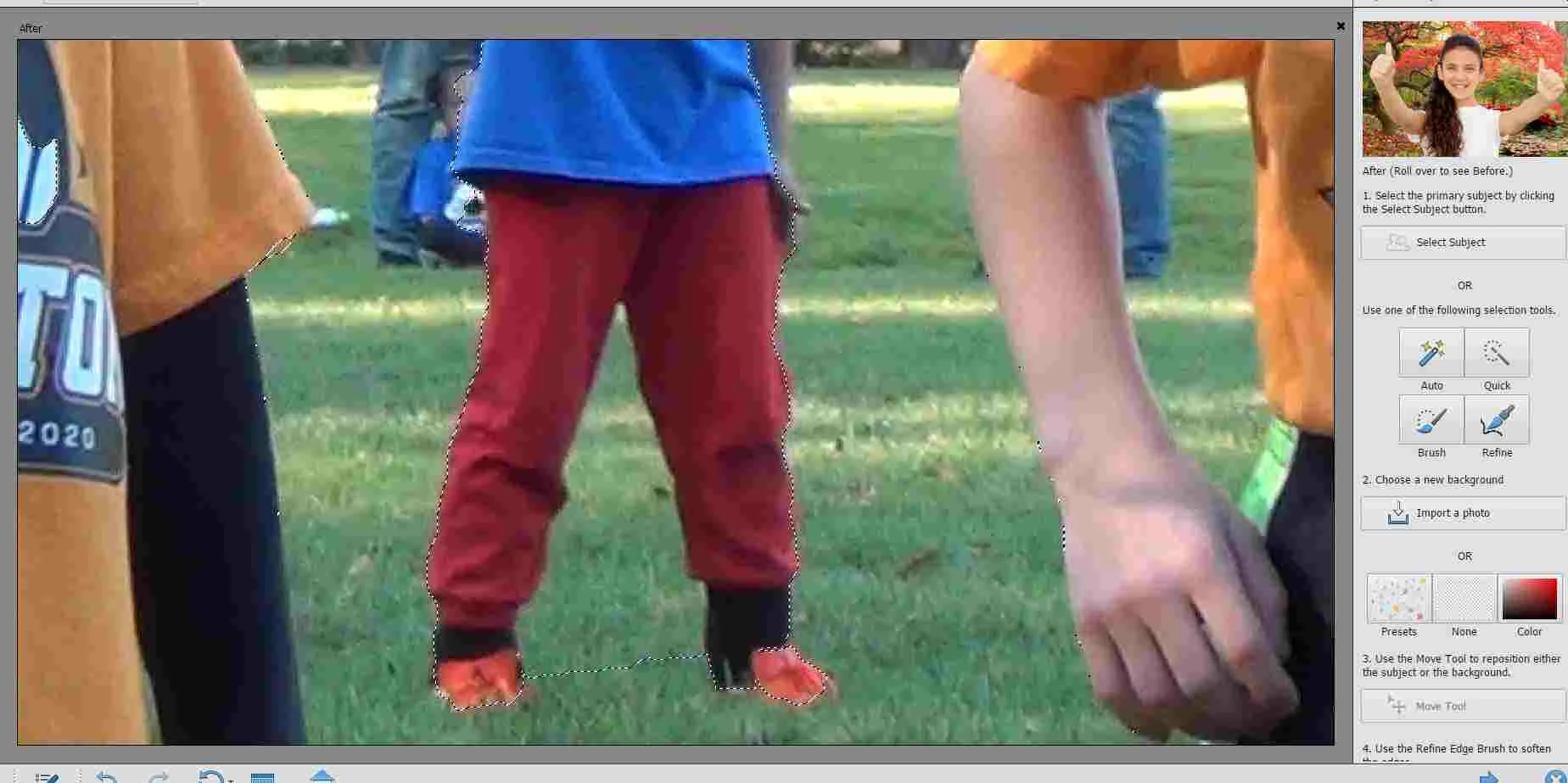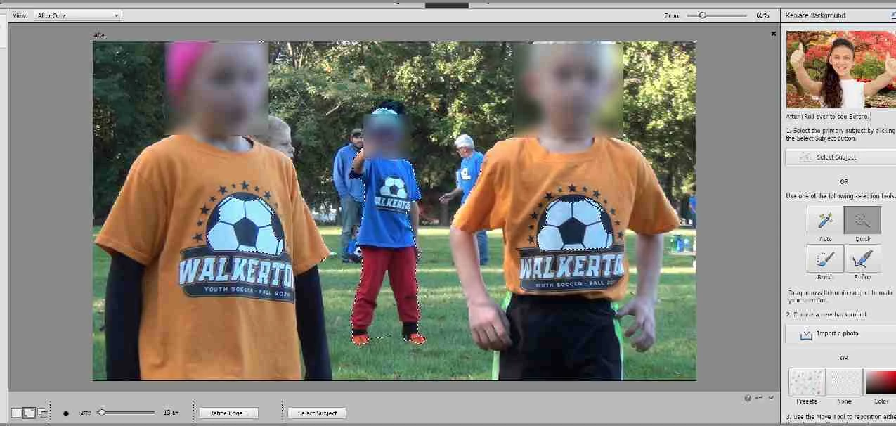 Using the Guided edit function of PSE2021 on Windows 10. In this example, I'm using the replace background option.  Here is the problem I have.  When I use the quick selection to outline my subject, I want to zoom in so I can see the edges clearly and define them better.
