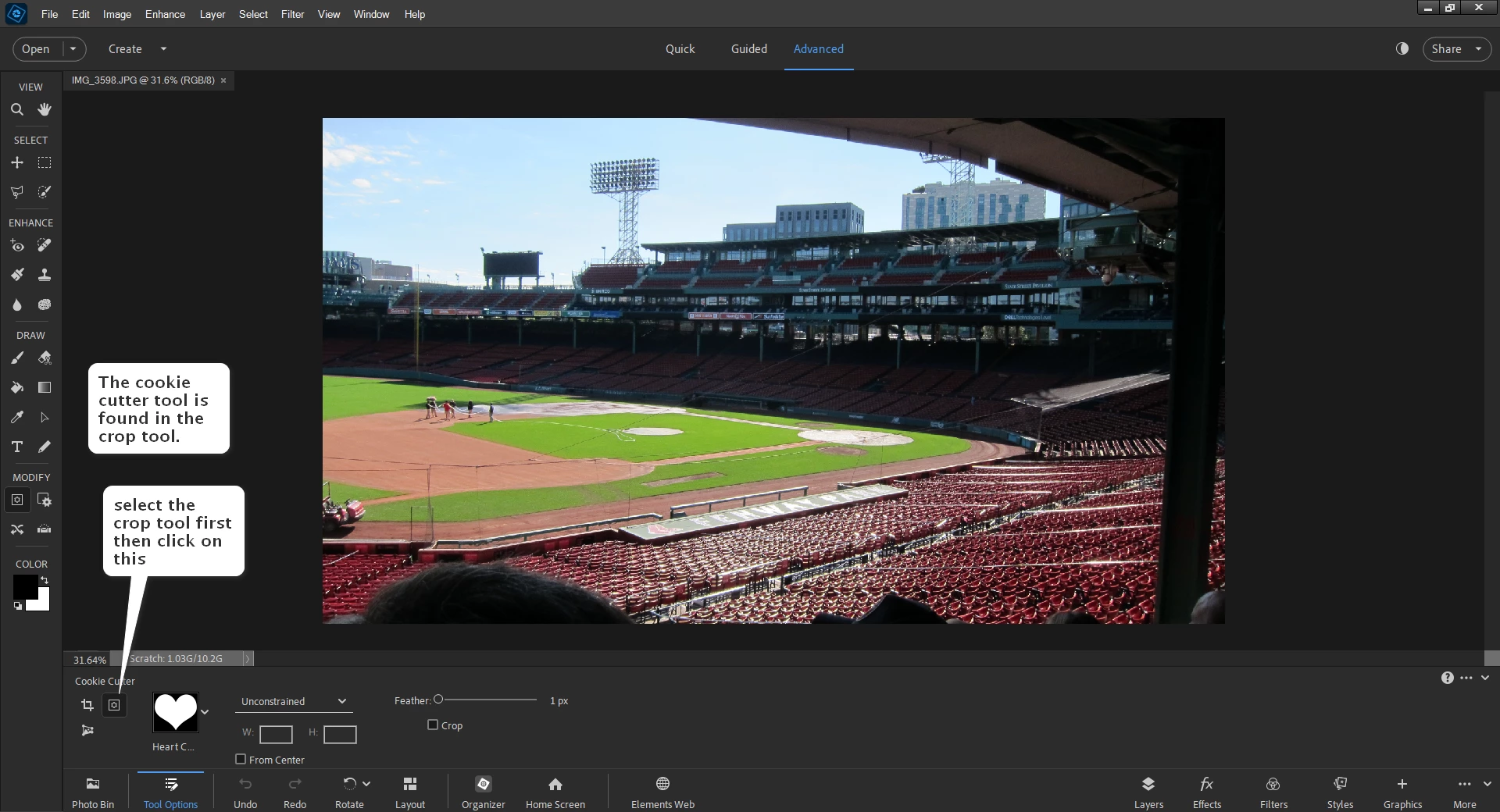 I had tried to use the cookie cutter in PSE 2024 but the cookie cutter icon is now under "Enhance". The older PSE was under "Modify".