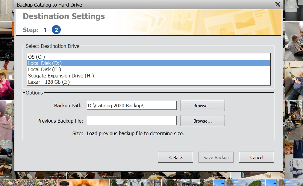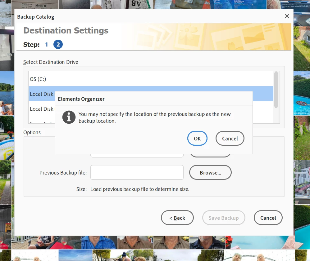 I should NOT have to specify a previous backup file.