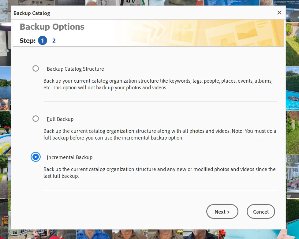 I can no longer do an incremental backup in PE 2020.