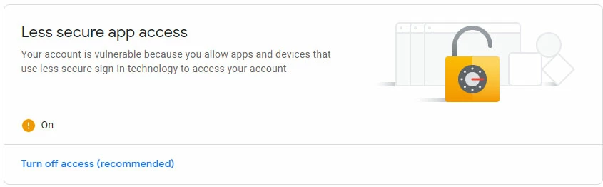 Scroll down to less secure apps and turn on to allow.