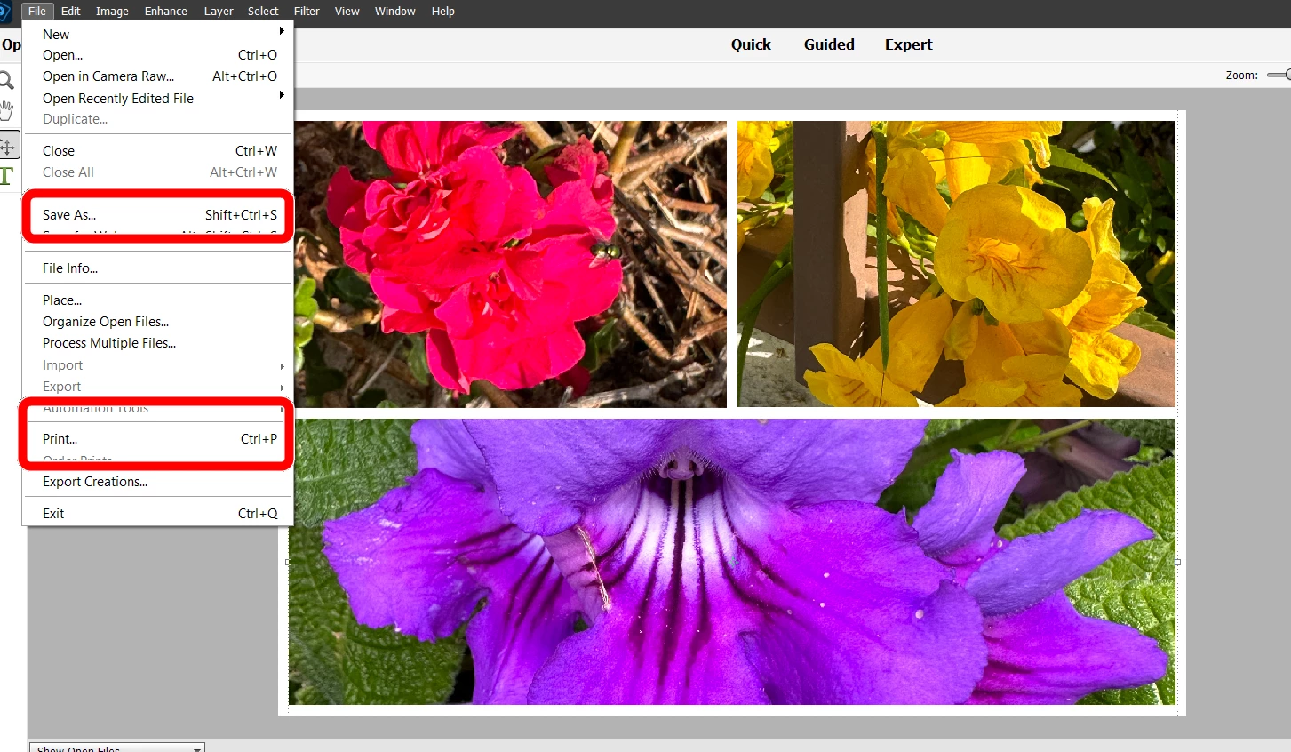 The .pse file that has been saved from the collage can be opened and edited again in the Collage Editor.