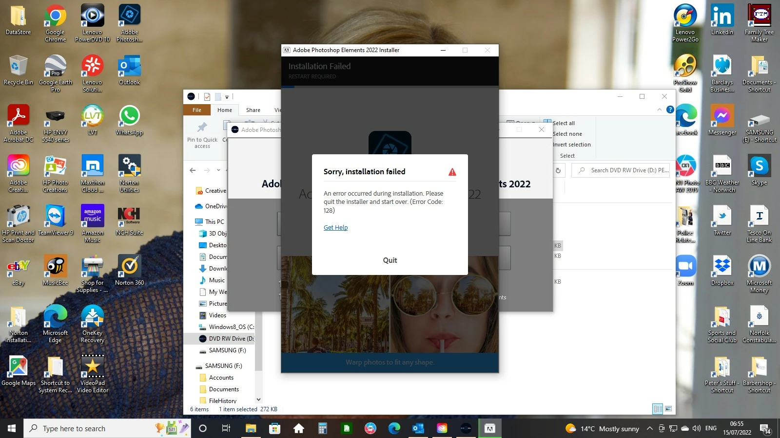 Photoshop Elements will not start up. I am told to re-install after getting error code 11. I have been trying to re-install but the the programme will not