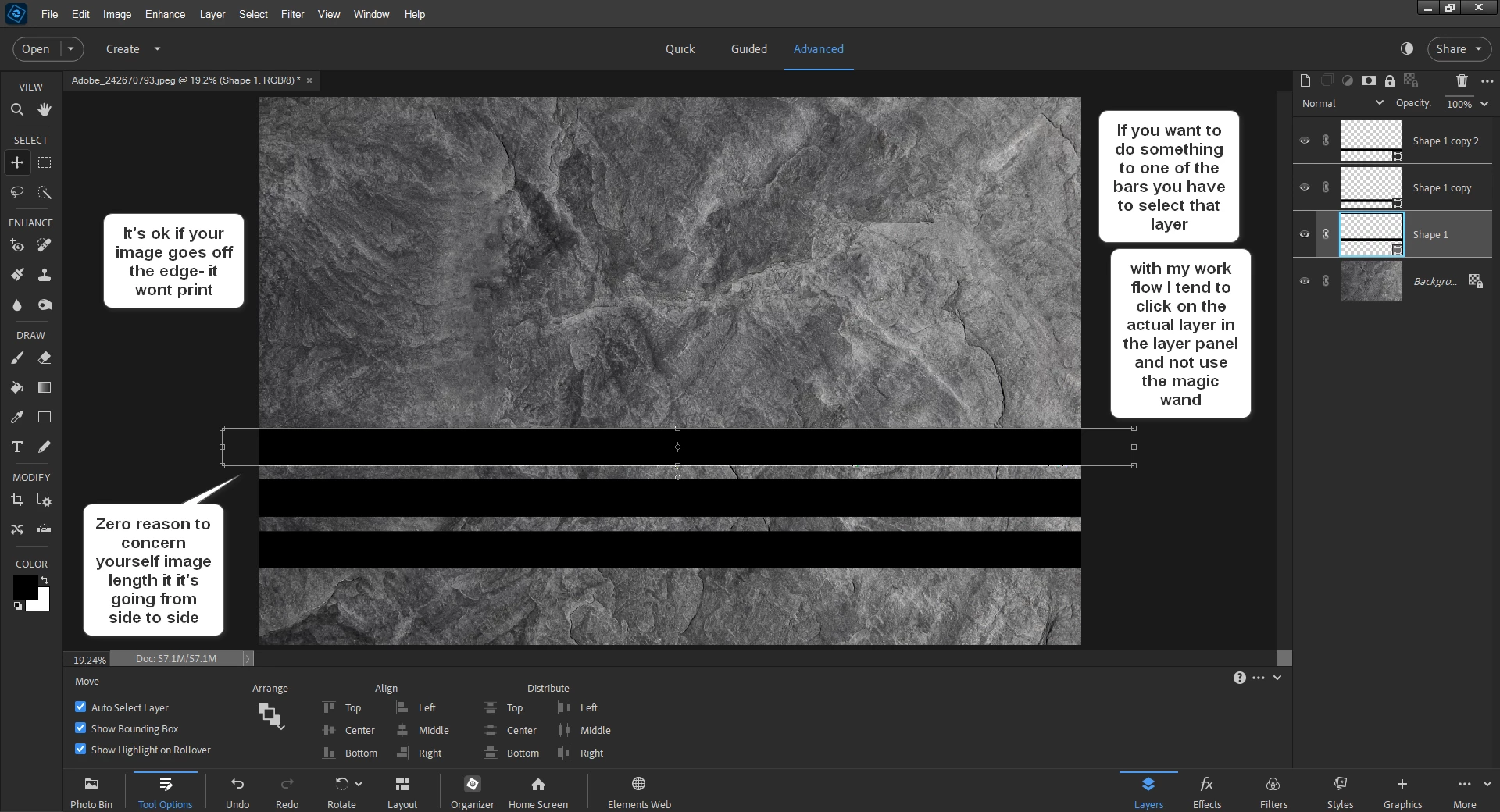 Some stuff I used to know how to do, but things have changed. I want to cut out the three black bars, then overlay the white marble onto another texture, then combine the two. When I merge visible, then try to select the black bars with the magic wand, it says I can't because there's no layer selected, but the layer shows selected.