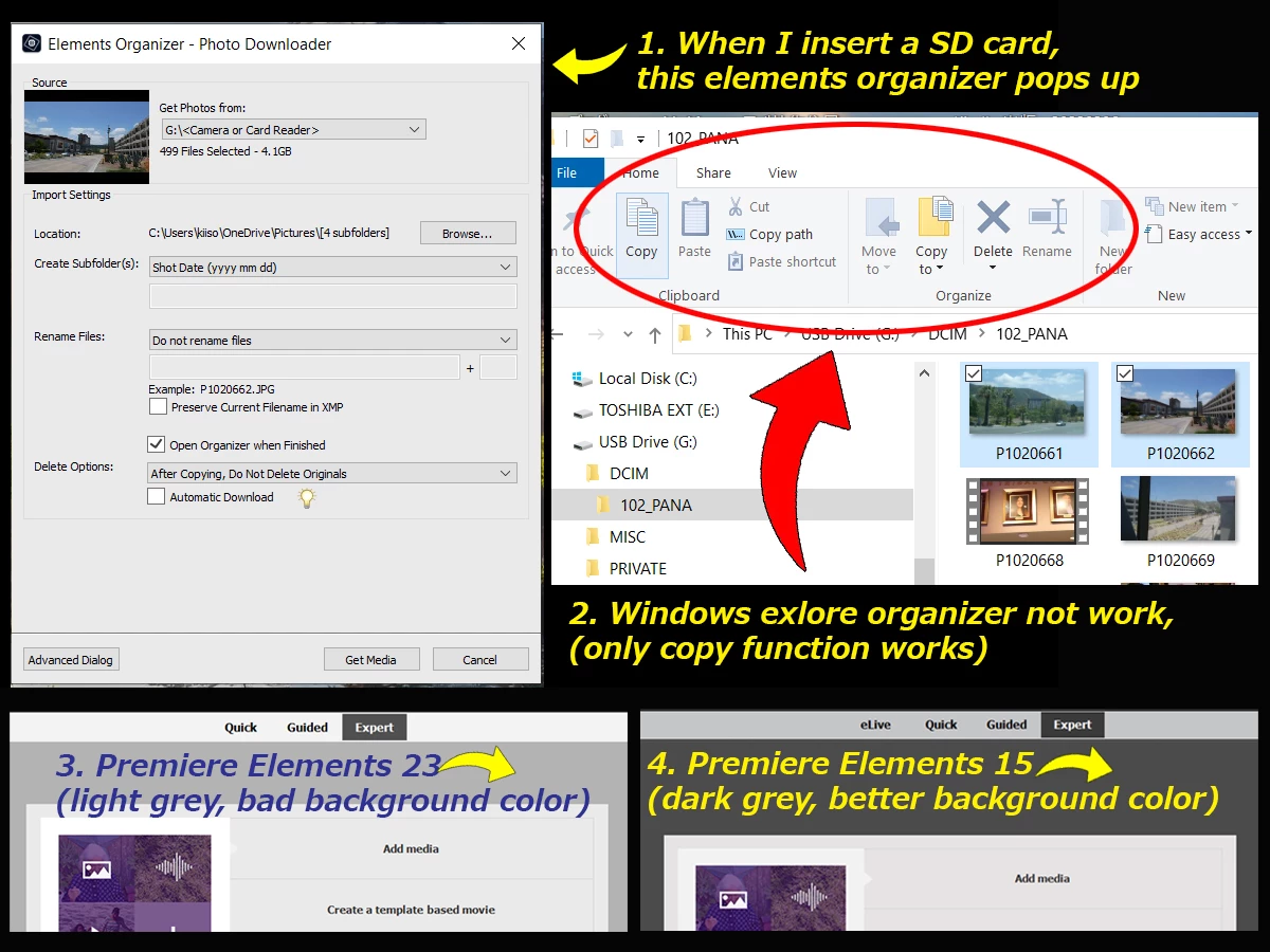 I have no interest to use the element organizer, I know how to use the windows organizer for these functions. So I have to use another PC (which no adobe product) for deleting / renaming SD files. It is totally annoying.