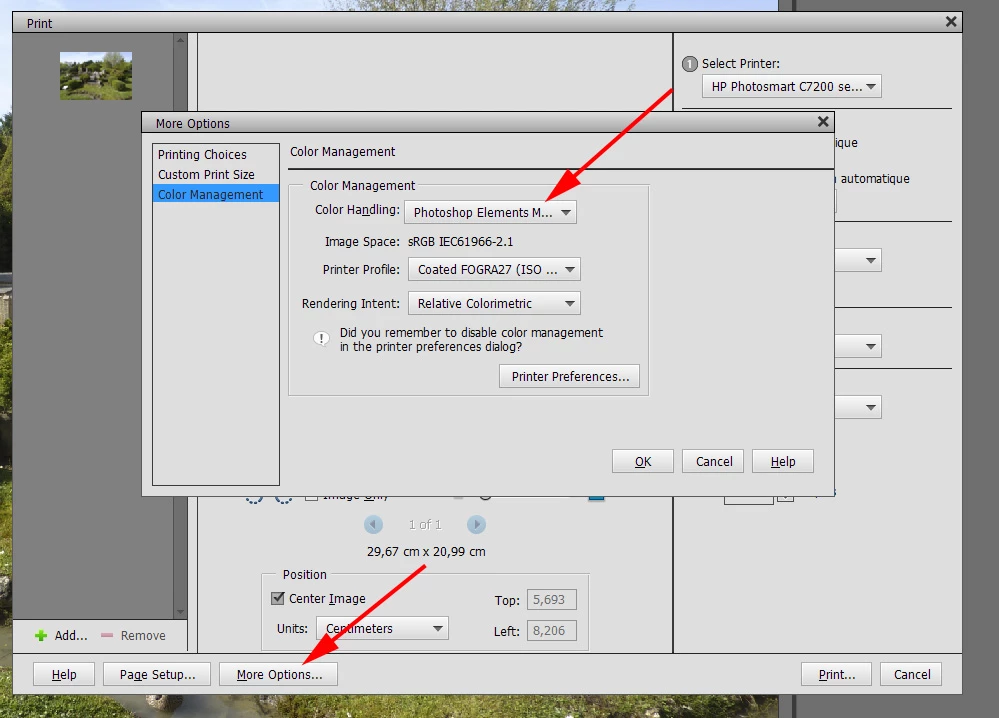 I recently installed two ICC Profiles from Hahnemuehle. I see them in C:\Windows\System32\spool\drivers\color, but when I try to print from Photoshop Elements 11, I do not see them listed under the Manual Color Adjustment settings. I am choosing "ICM" under color correction, and the Input Profile drop down only shows "Standard" and "Adobe RGB (1998)". This is my first time trying to use ICC Profiles. What am I doing wrong?