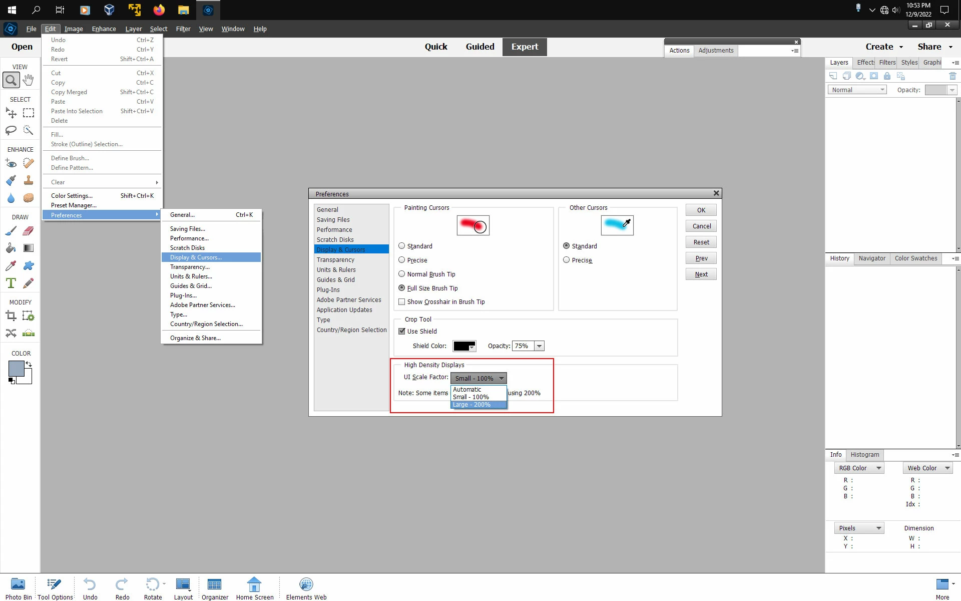 I find the tool icons and menu bar too small. Can I make them larger? HP laptop Windows 11 Photoshop 2022