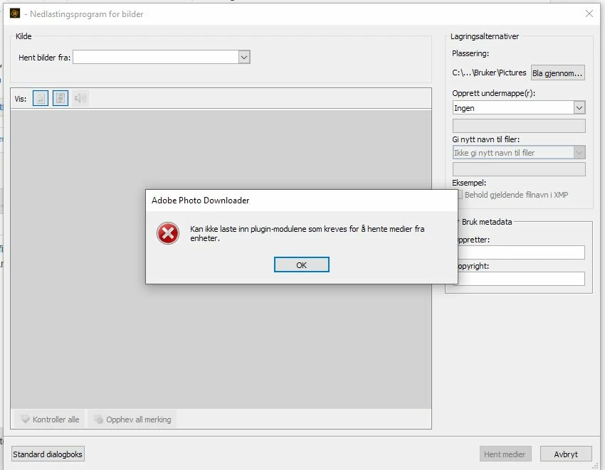 When I try to import from camera and Card reader I get a fault message saying "cannot load the plugins required to retrieve media from devices" (translated from Norwegian).
