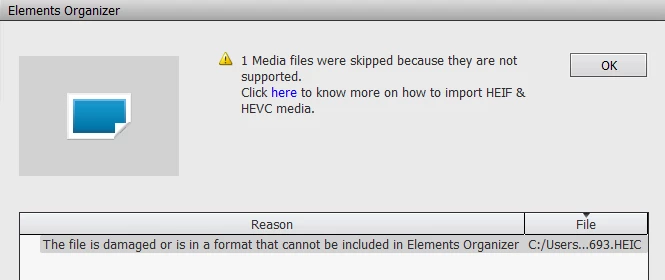 Our new iPhone saves photos in HEIC format, but these files are not importing into Photoshop Elements or Organizer. I followed the help instructions by loading the Microsoft HEIF image extension and the HEVC video extension. Now we can see the previews in Windows Explorer or Photos, but still cannot import them into Elements. So I purchased the new (2022) version from Adobe, and still get the error that this format is not supported - even though it provides a link back to the instructions I already followed. Can someone please help me to import HEIC files?