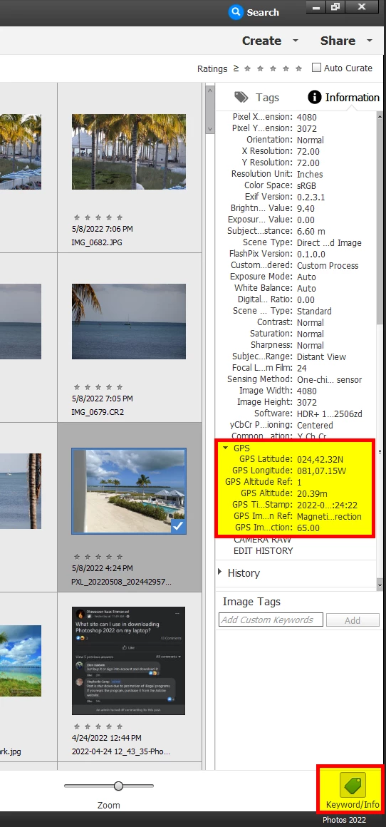 How do I make sure that GPS data (if available) are imported during import of a picture file in Elements Organizer?