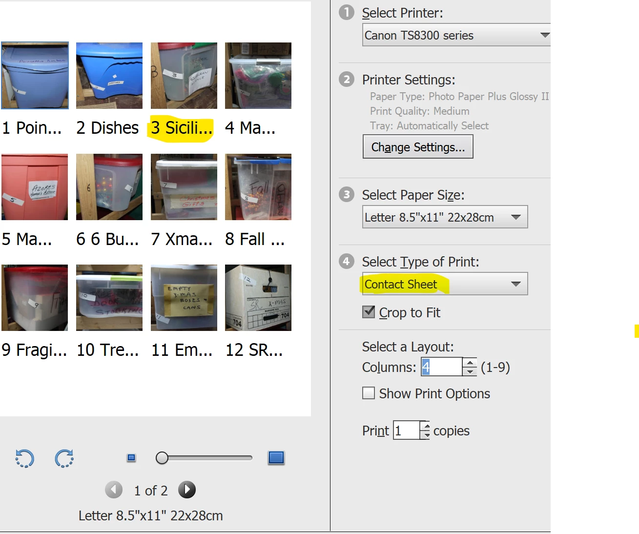 Is there a way to reduce the size of the lettering of the captions? I am setting the print out to 3 columns and the lettering of the captions are cut off.