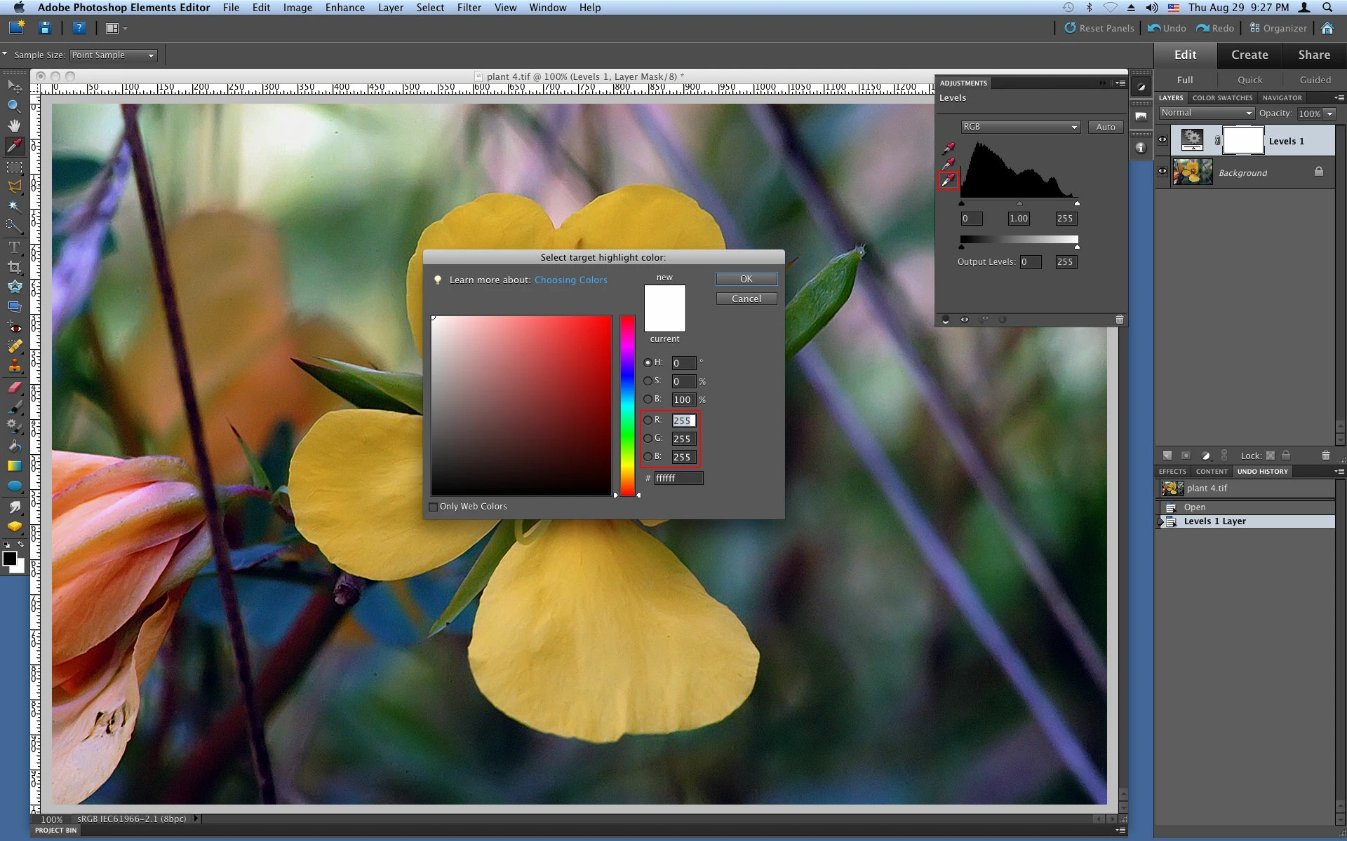 in elements 10, suddenly my adjust lighting tool to levels to white point makes the screen light blue- not white.