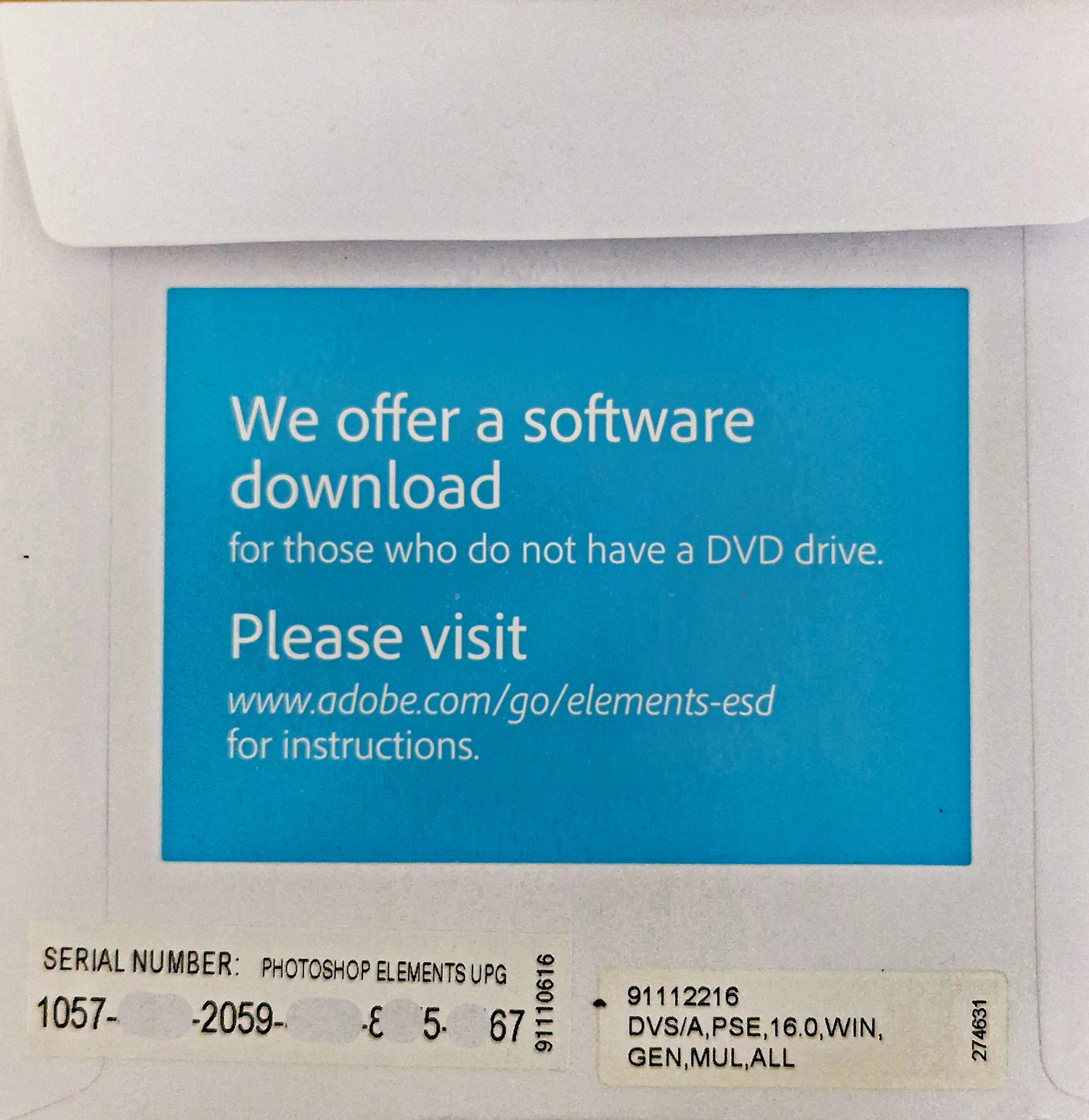 I registered the product with Adobe on 07/10/2018. The problem is that Adobe registered it as v16.0 (see photo) which seems supported by the small sleeve label [91112216 DVS/A,PSE,16.0,WIN,GEN,MUL,ALL] whereas the CD itself is undoubtedly v18.0 as evidenced by the photo of the CD and also the attached screenshot of the installed product. Is it possible that the seller put a v18.0 CD in a sleeve meant for v16.0?