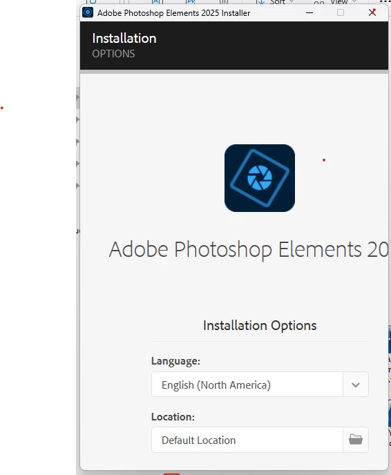 I purchased Adobe Elements 2025 today. I downloaded and began installation. It got to a screen, which is obviously a partial screen, entitled Installation Options and seems to stall. I let it sit for awhile but nothing happens. I try to exit that screen and it indicates that it is still installing though it has been over an hour. I can find nothing on Help that helps me. Very frustrating. I have used Elements 2020 for years with no problem.