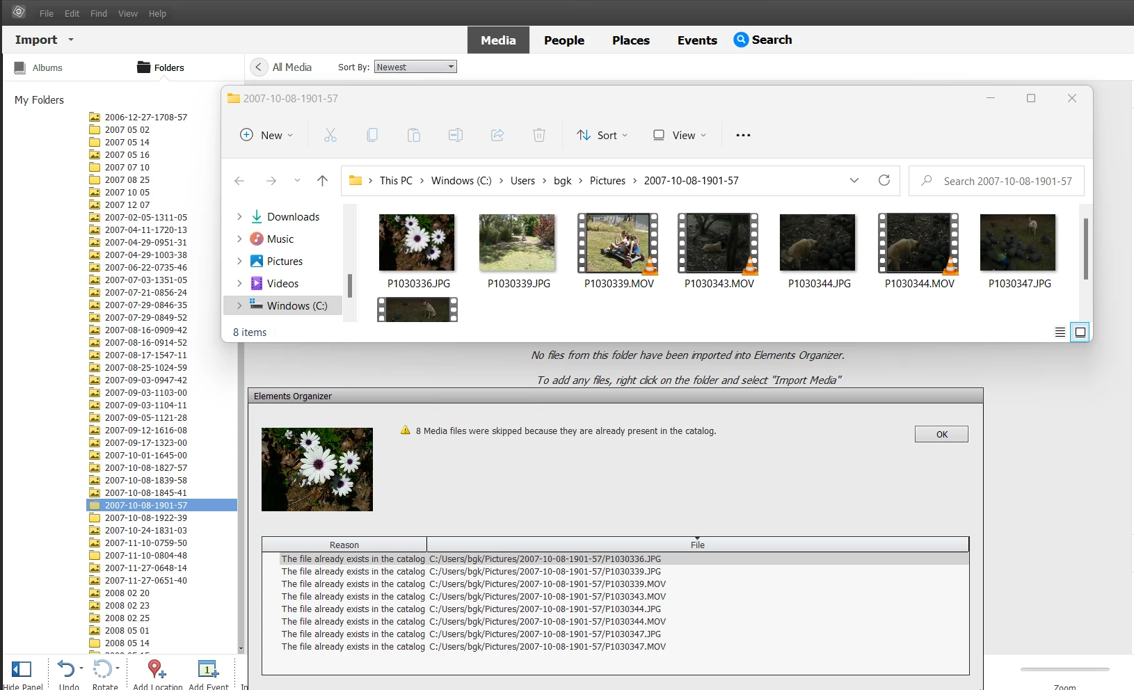 On a new computer running Windows 11 I installed Elements 2023, converted the Catalogue. I have some folders with no files showing in Organizer though they are in the explorer folder. I've tried Import Media but all I get is a list "8 Media files were skipped because they are already present in the catalog." Thanks for any help.