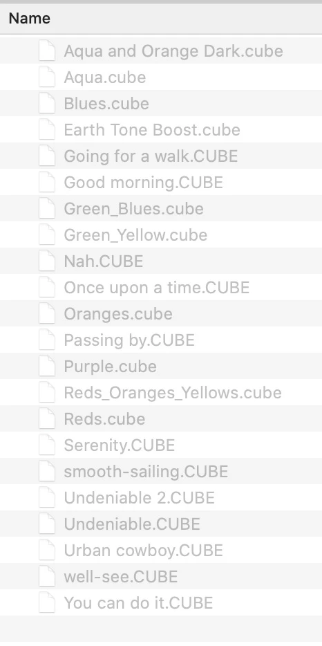 I did open Preferences - Plugins - Additional Plugin Folder - Choose, but when the files show up they are grayed out so that they can't be chosen. I have managed to install other plugins before such as the Nic Collection but that wasn't in .cube format. Does anyone know if I should be able to install files with .cube format? If this is possible could anyone please guide me as to how to instal these files? Thank you.