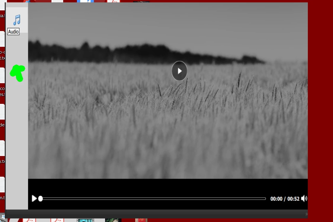 In the screenshot I am attaching, I used green to mark where my cursor actually was when "audio" was highlighted. This is another problem: I have to point at some point other than where the button is in order to interact with it. If I increase the size of the window before I launch the slideshow editor, it increases the size of this screen, but i can't see any more around the edges.