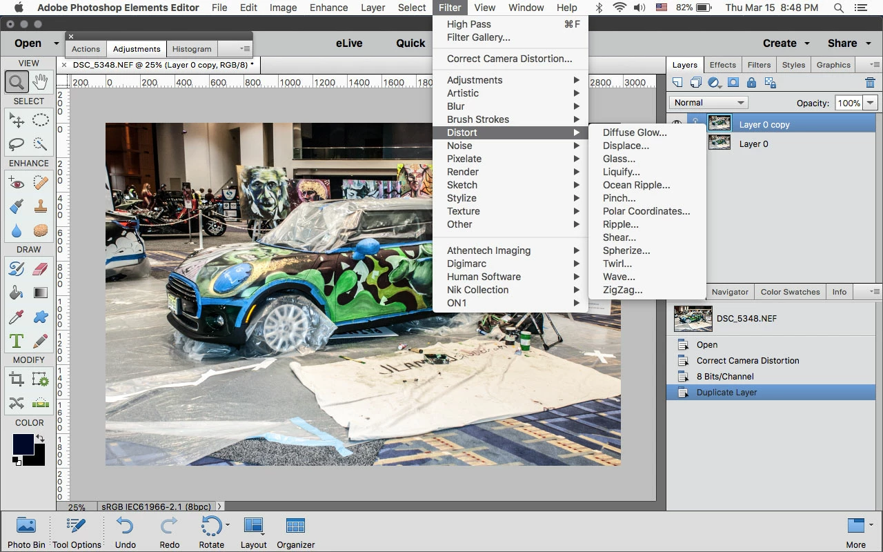 is de filter 'Vervormen' niet meer beschikbaar in de versie 2018?