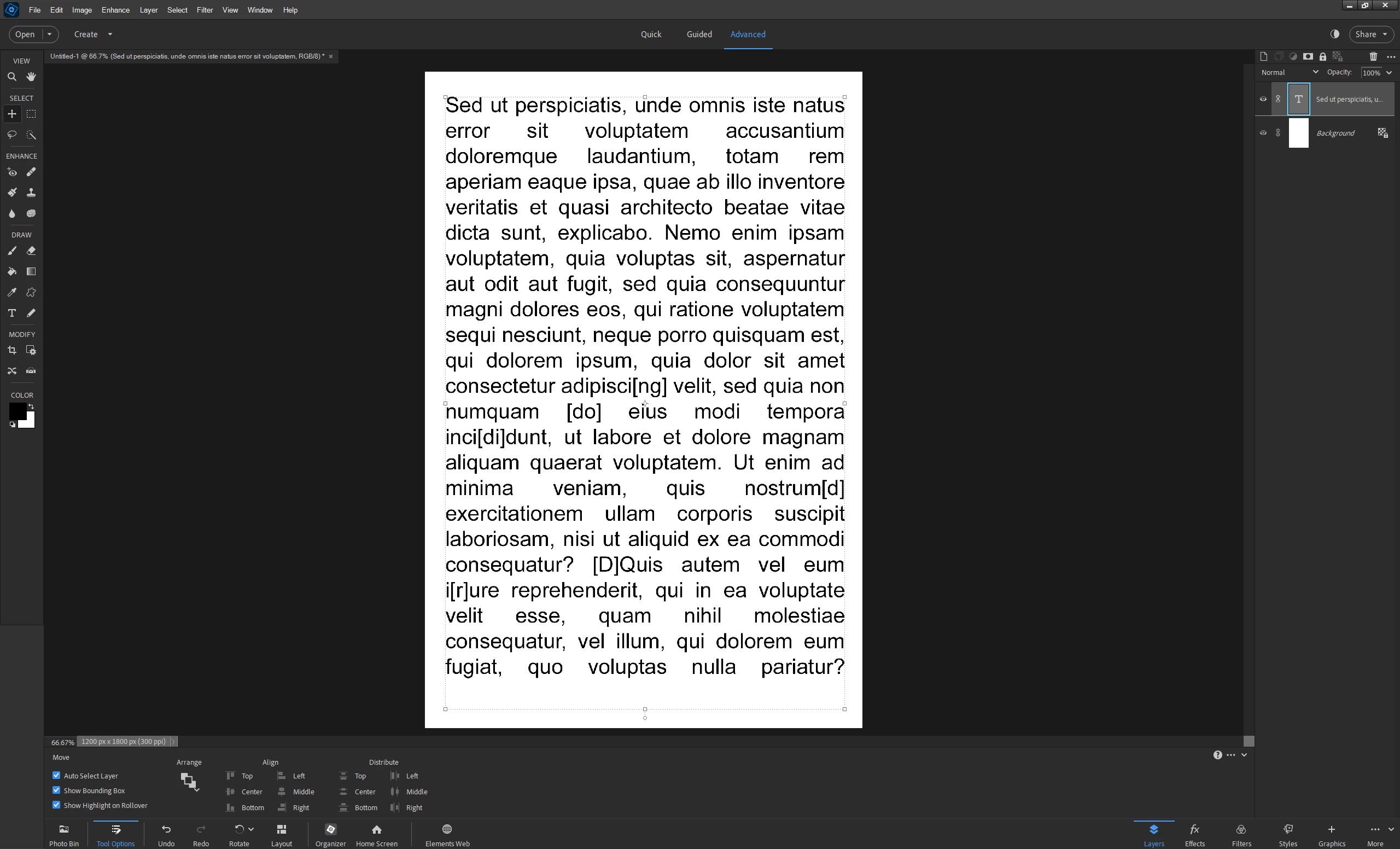 Is there a way to justify text in Photoshop Elements 2020?