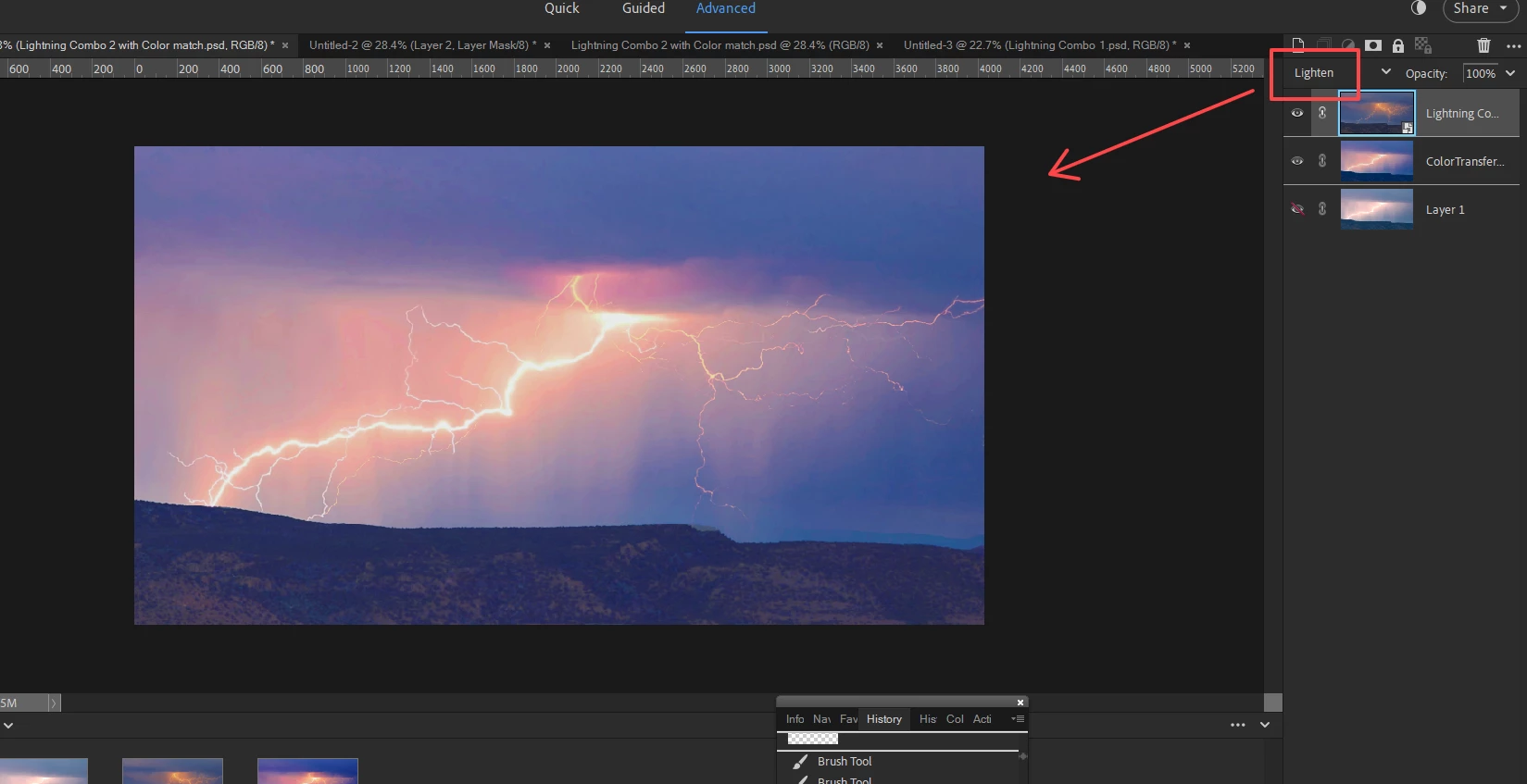 Here's the deal: I have several photos of lightning strikes, taken a few seconds or more apart. Is there any way to combine them into a single image, to look like they were all at the same time?