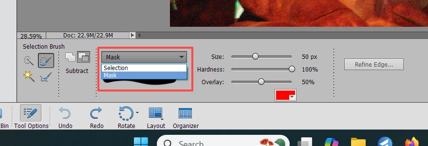 Looking at past posts online, I figured it might be Quick Mask. And it goes away if I click on the traffic sign for "cancel current operation" but comes back when I click on the image again. I tried pressing Q many times, whether with the color on the image or just with the mouse not clicking on the image. No difference. the pink will come back when I try to select text on the image again. I saw an icon for Quick Mask might be on a toolbar but don't see it. Any clues? Thank you.