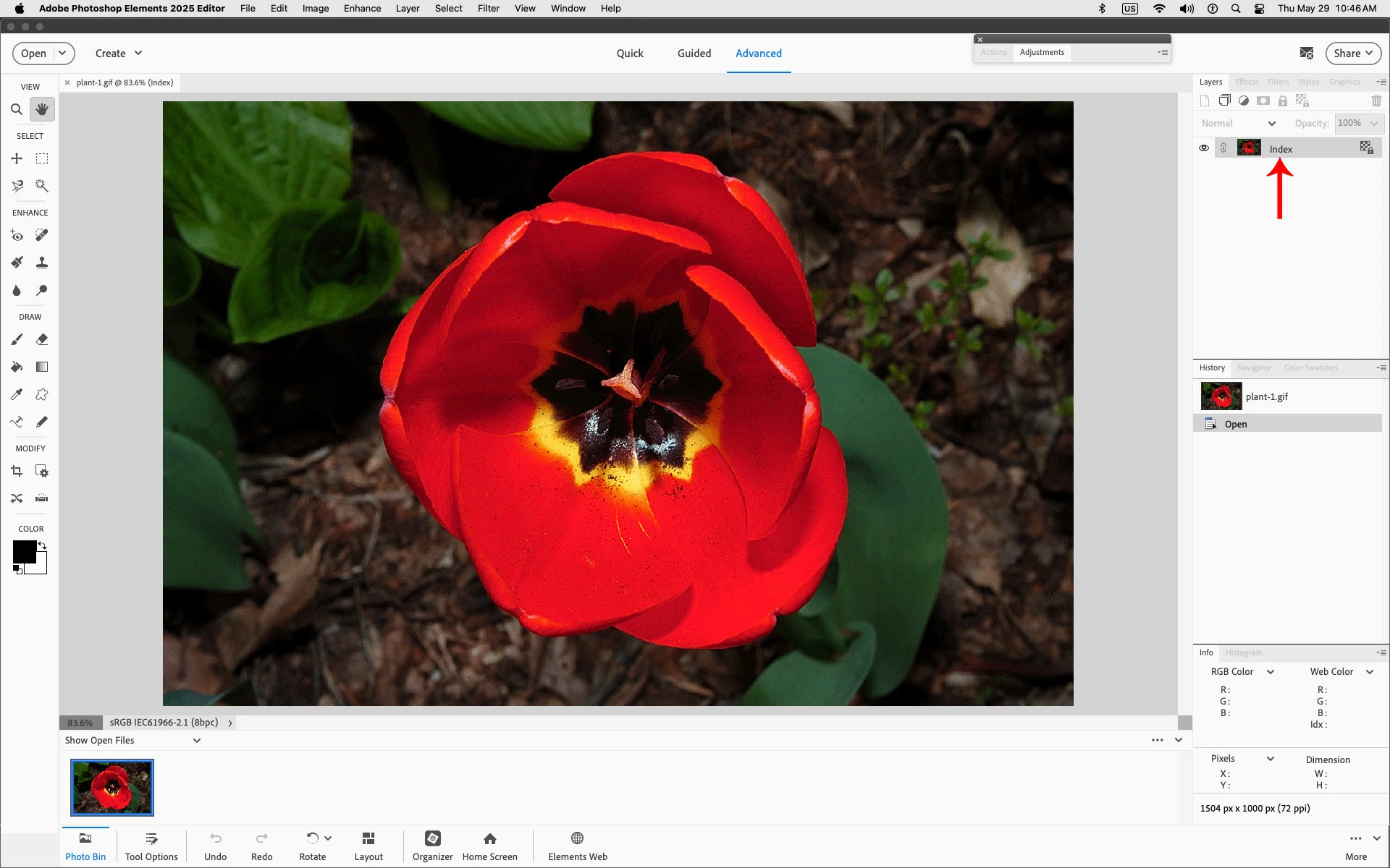 I have Photoshop Elements 13, so I realize it's not current, but here goes. Starting a day or two ago, an image turns orange pink when I tried to click on it with a tool. I guessed that I had flattened it by mistake. It's text on a layer over a gif background. So I tried opening the background image, planning to create the old one again. Same results. So it's not a problem with one image, and it's not so general as to be a monitor issue.