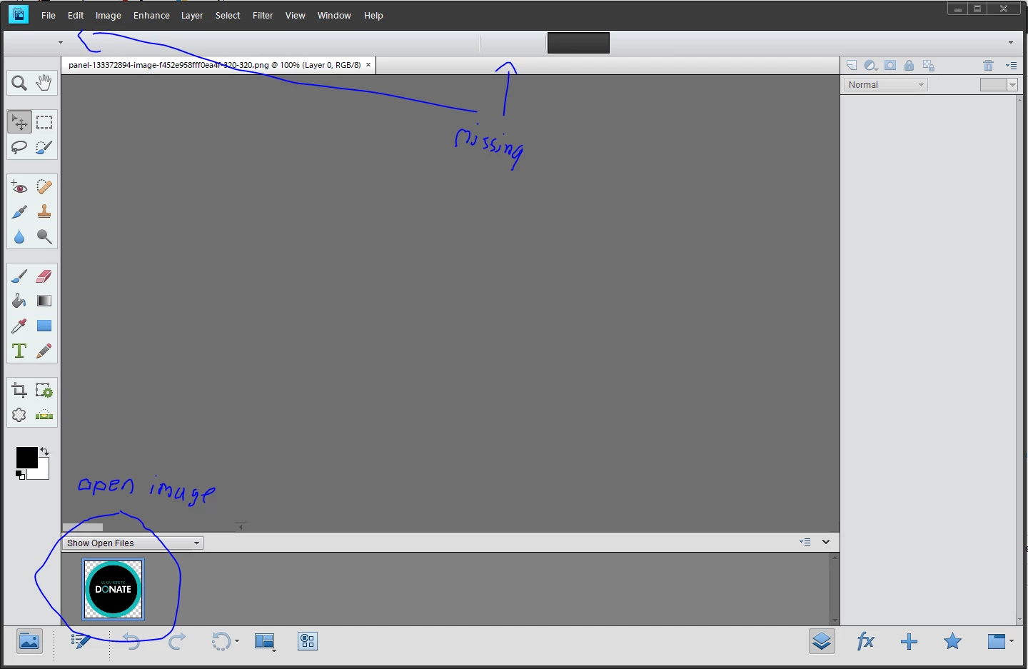 Another issue i have is that If i do manage to open an image, It dosnt actually show up and i cant do anything with it, (See Below) This is very annoying for me as i run a youtube channel where Photoshop is essential for things like thumbnails and editing. Please respond.