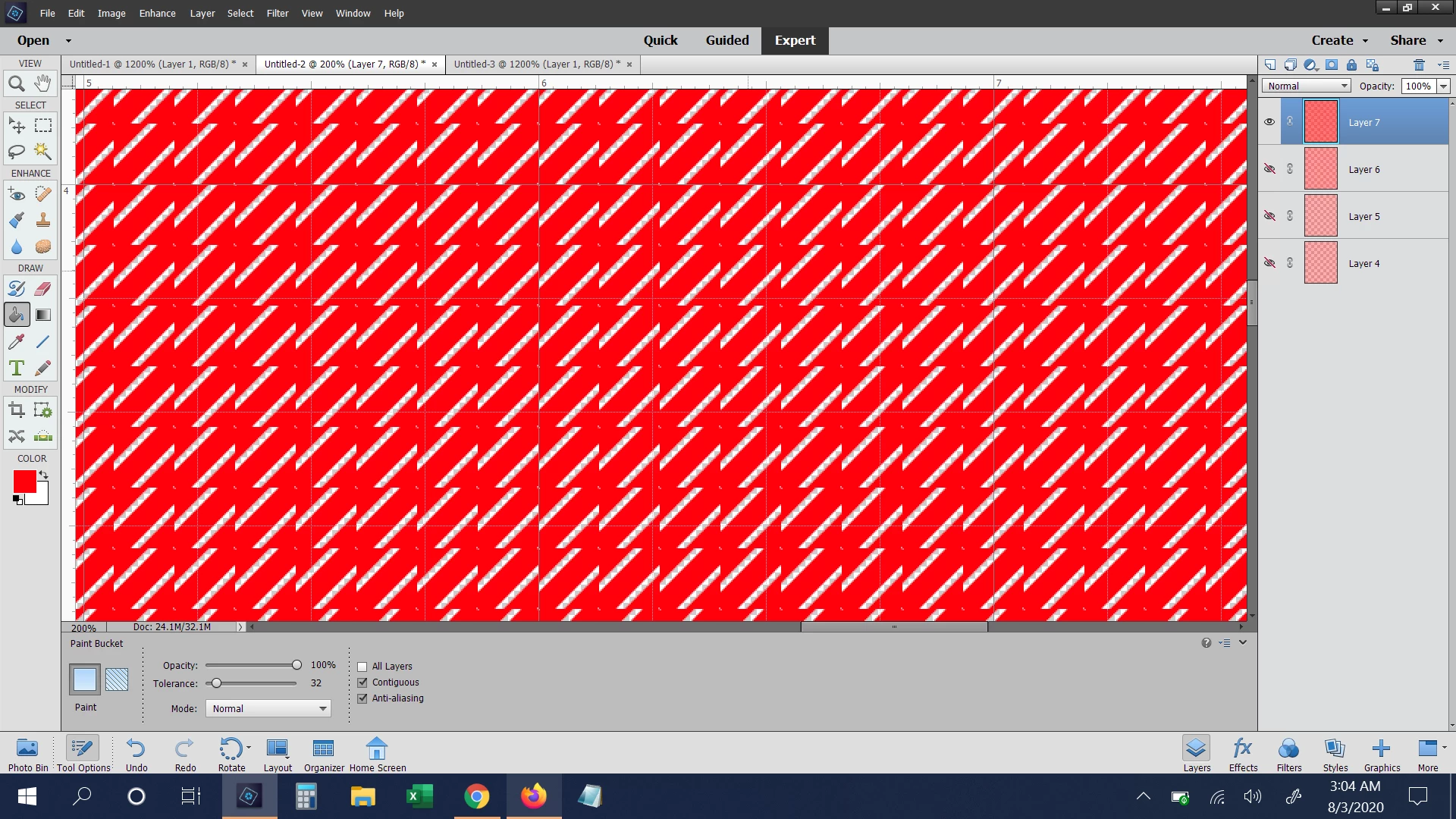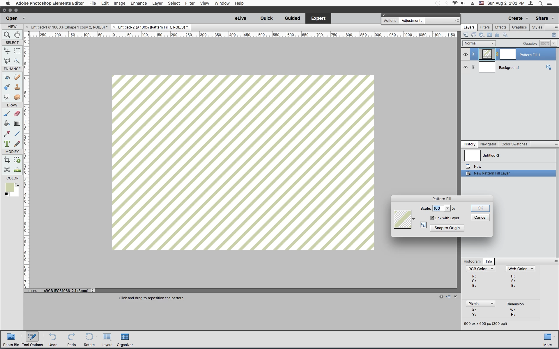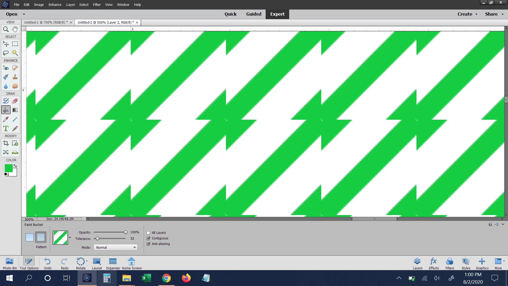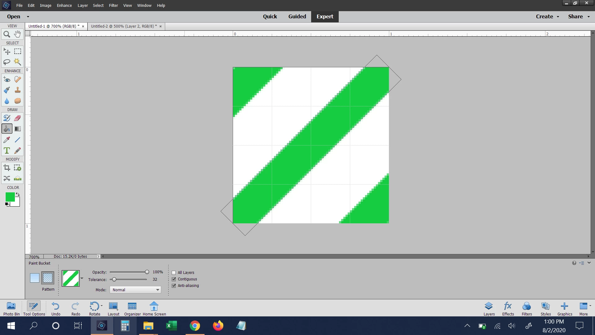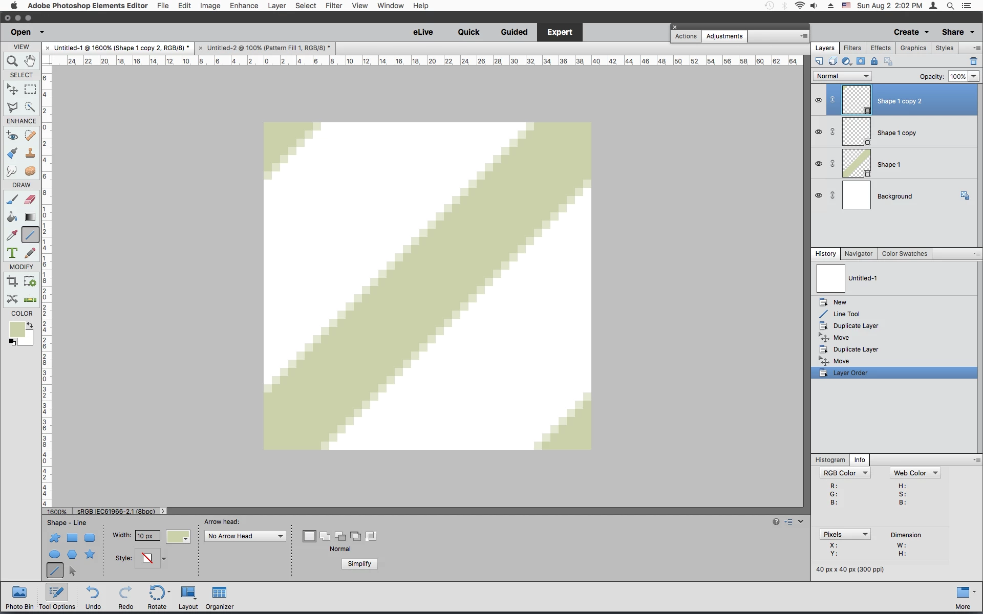 Hello, I have tried everything I know and sometime it works others it doesn't but I am trying to make diagonal patterns in Photoshop Elements using a 40px x 40px size