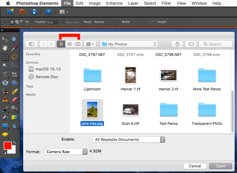 I have been used to being able to edit JPEG’s using Camera Raw when opening the file in Photoshop Elements, but that facility to process JPEG files with the RAW processor seems to no longer work.
