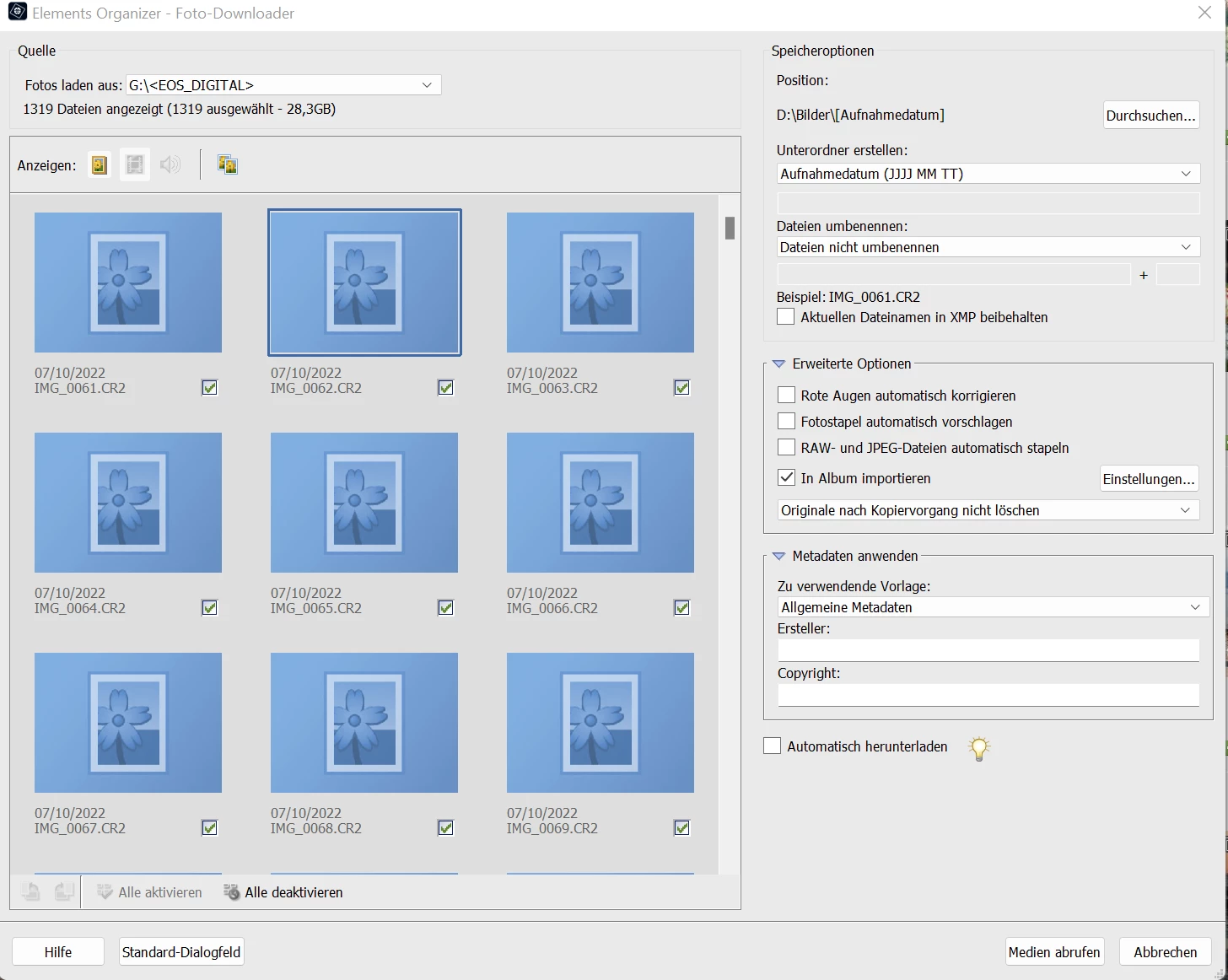 Keine Vorschau beim Importieren von Canon Raw Dateien (cr2) in Photoshop Elements 2022