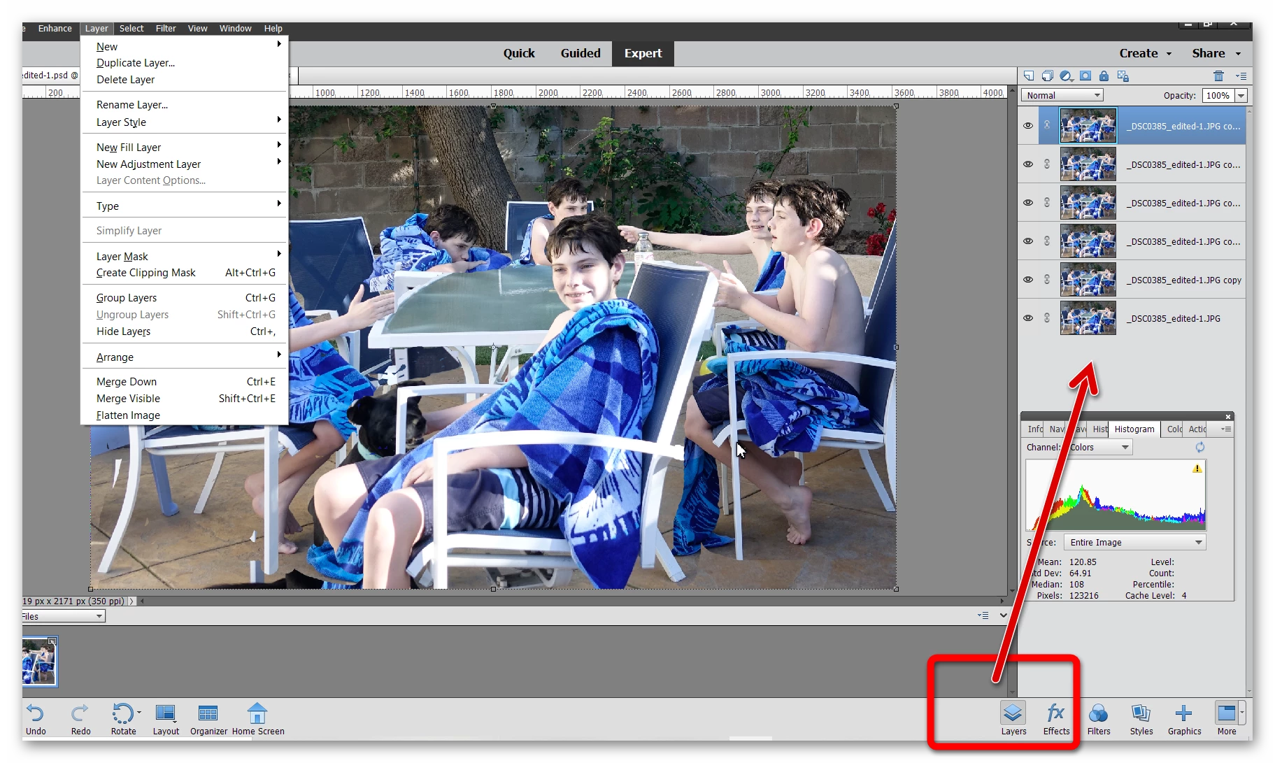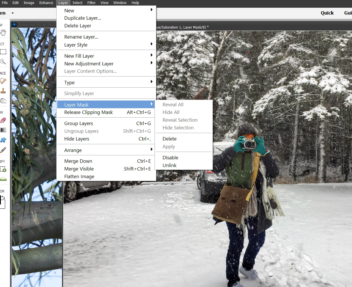 Most of the headings under LAYERS are grayed out, as are the options under WINDOW.
