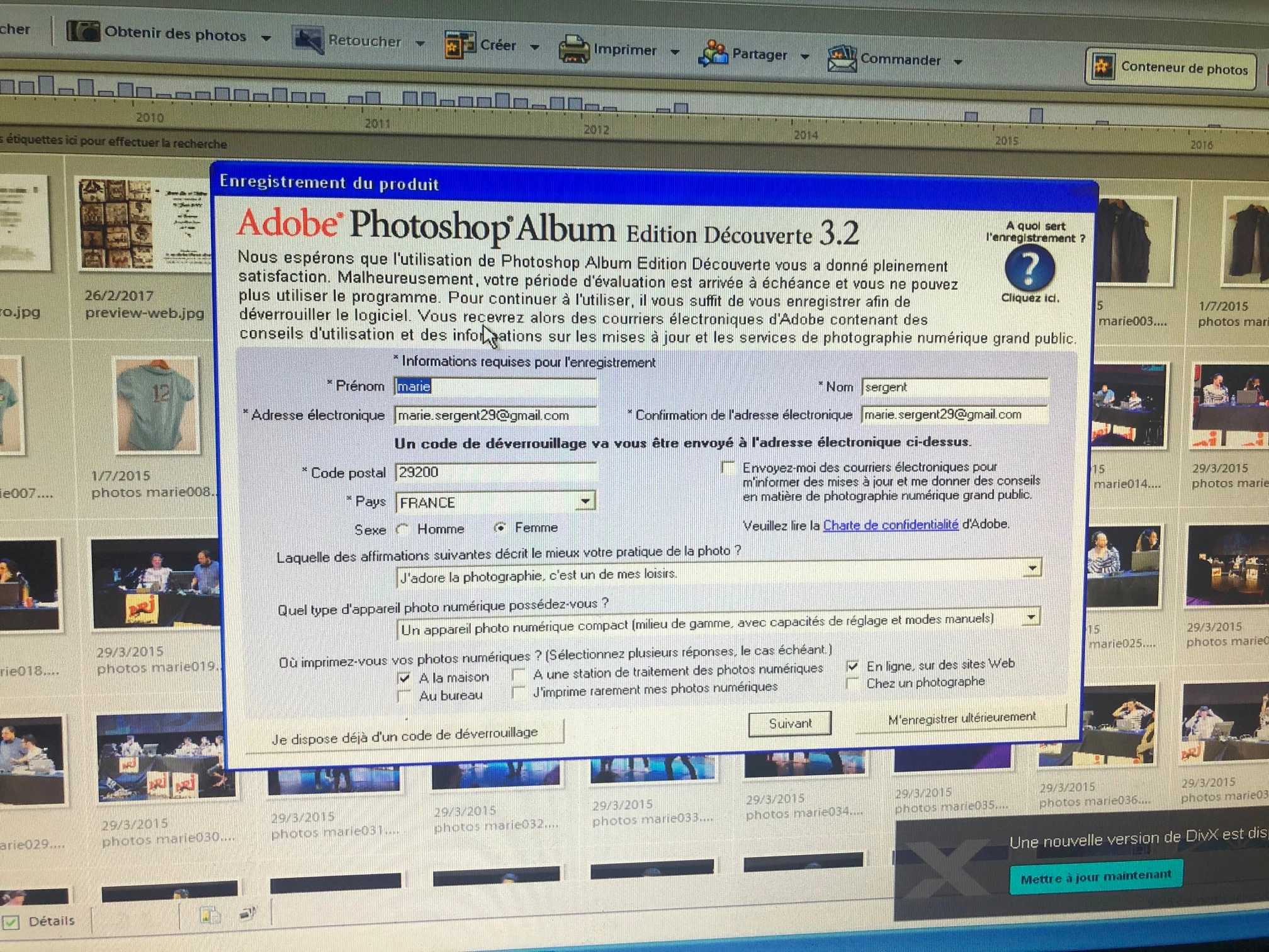 Les photos étaient accessibles via le logiciel "Adobe Photoshop Album Starter Edition 3.2", installé sur cet ancien PC. Ce logiciel nécessitait apparemment un enregistrement avant la fin de son support ou d'une période d'essai du logiciel pour continuer à accéder aux fichiers (via un code reçu par mail, avant 2015). Malheureusement la personne qui gérait l'ordinateur à l'époque n'avait pas procédé à cet enregistrement. Depuis, il m'est impossible d'accéder aux photos via le logiciel qui semble aujourd'hui obsolète et n'est plus supporté par Adobe, même si j'arrive à en ouvrir l'interface...