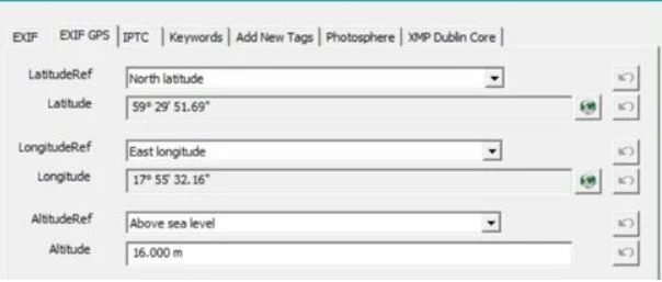 Most external sw cannot read this format, probably because of missing decimals. Windows Photo and Icloud can read it and uses the long E according to above, 17 degree. In this case around 50-55 km's off. If you are just above a degree the error will not be as significant.