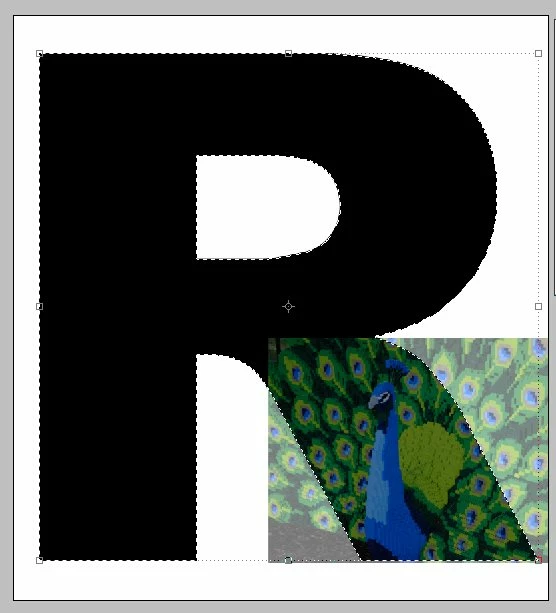 Click the merged picture layer and Delete the selection. This deletes everything outside the R.