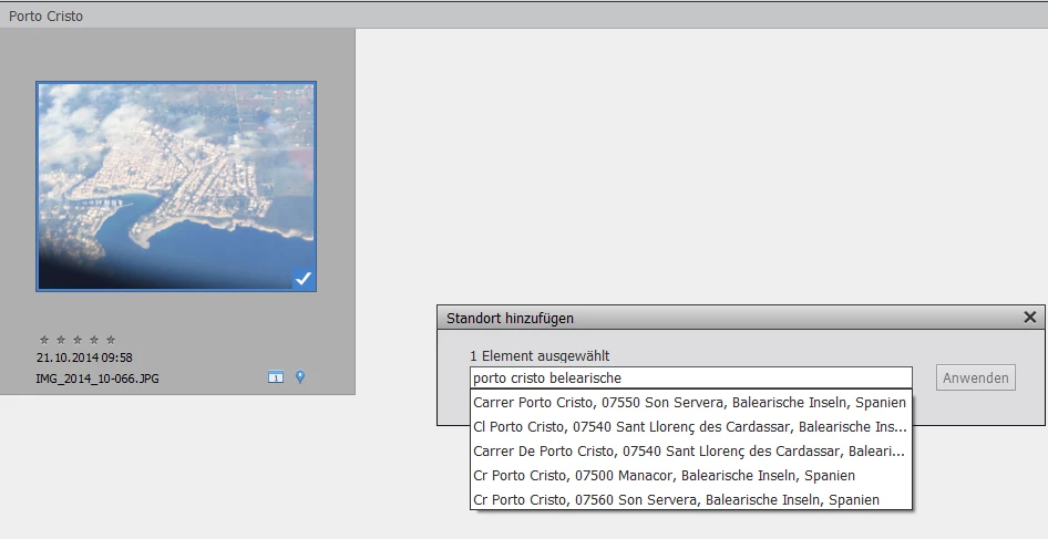 Here is an example where I want to add the town of "porto cristo" on Mallorca, Spain. It lies on the "Balearische Inseln".