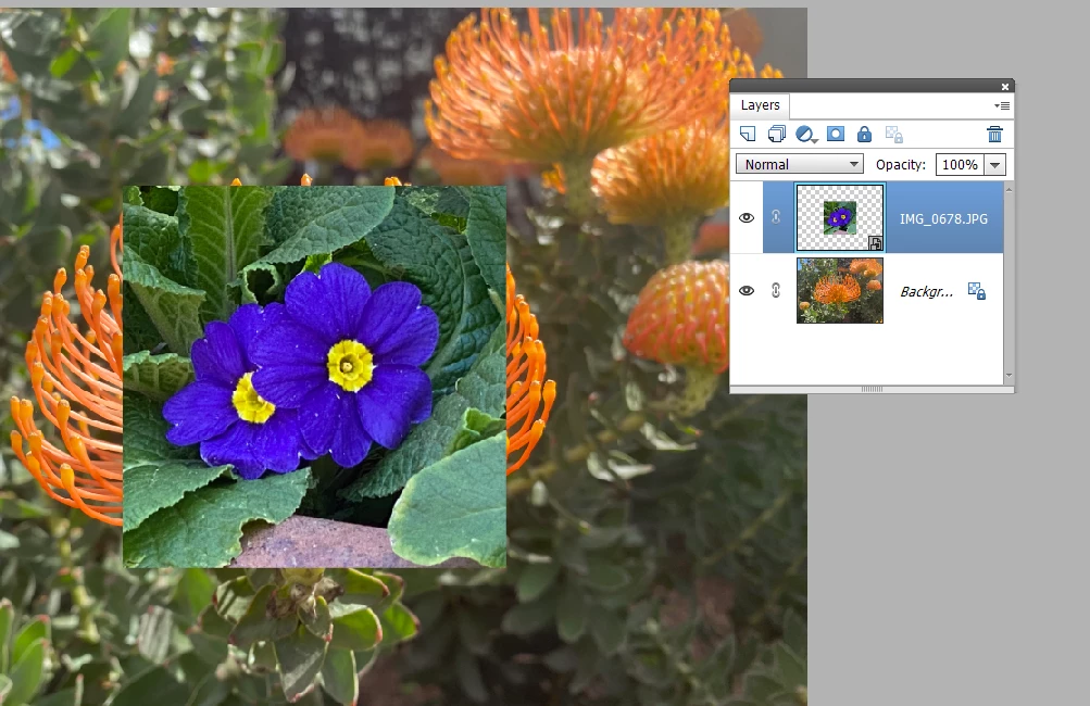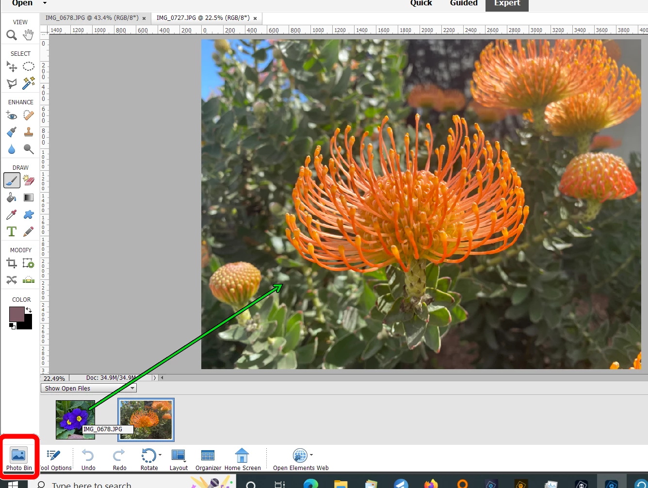 With both files open in the Editor drag one of the files from the Photo Bin up to the active file in the editing screen.
