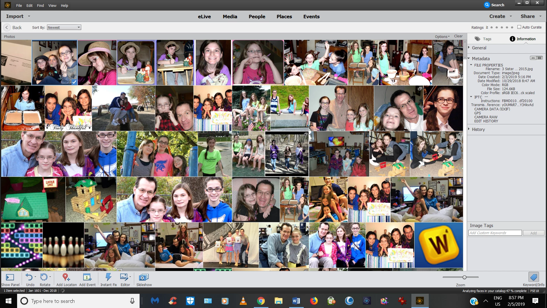 The photo highlighted was taken in 2015. But, as you can see – it is given a much more recent date for the time it was created. I imagine the date that PSE is giving here, is the date the photo was imported into PSE. I would like to learn how to make my metadata tell me when the picture was taken, not when it was imported into PSE.