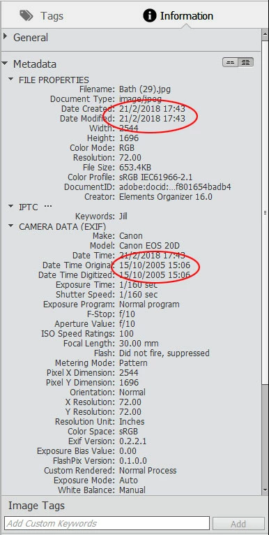 MetaData in PSE 18 How do I get the date the picture was taken?